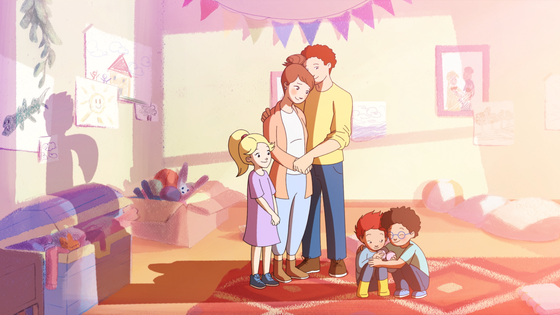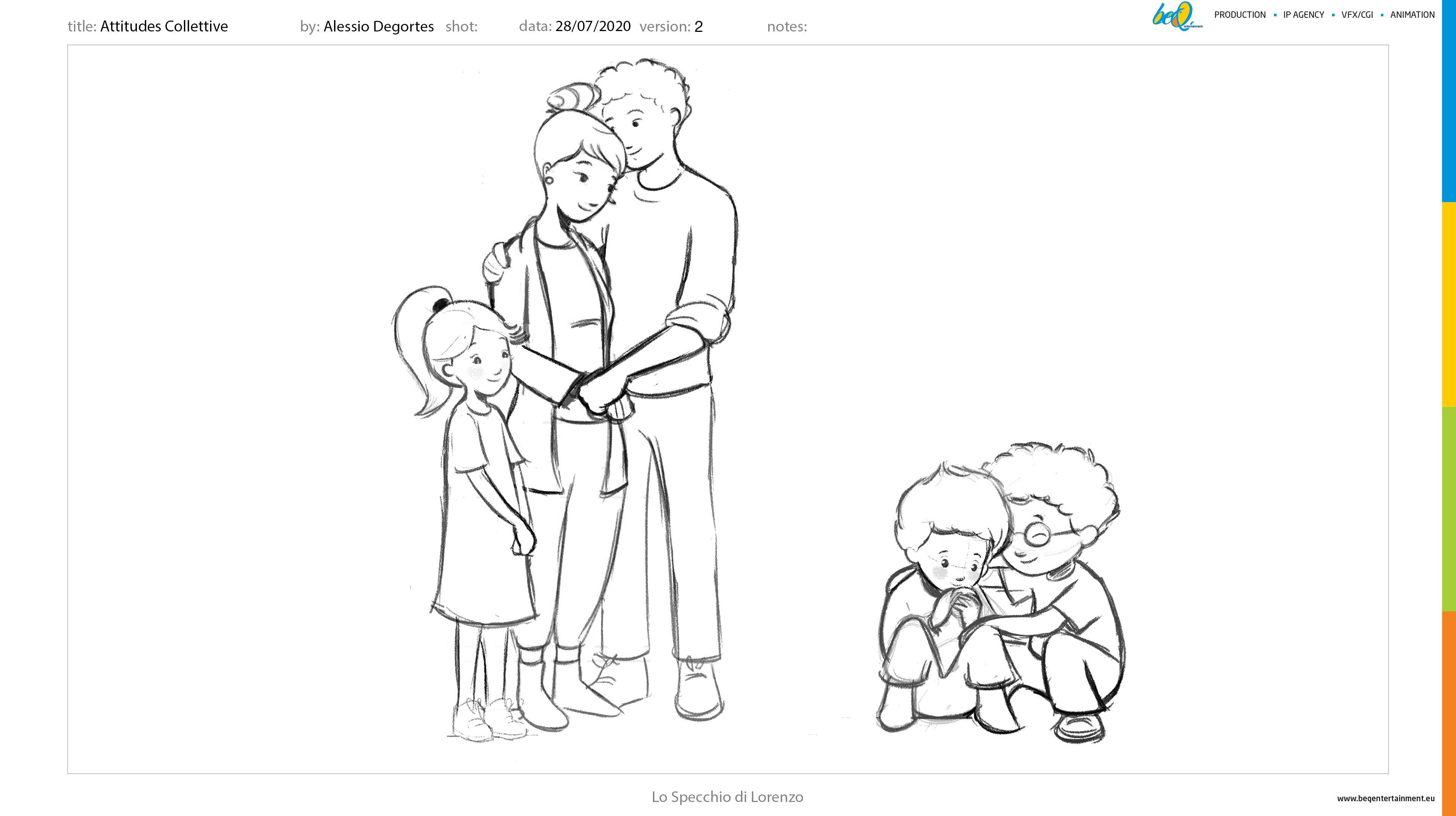 In Lorenzo’s world, nothing is as it really appears. Everything is transformed, scary humans are replaced by animals, rooms become woods, and courage is translated into the refrain of “Heroes," a song representative of the way the protagonist sees his older brother, initially his only "bridge” to the outside world. Everything Lorenzo likes has warm, reassuring, bright colors; in opposition, moments of discomfort and fear are dark and cold. What the little one lives in is the world created by the bubble of his autism, which prevents him from communicating, isolating him. One day, however, this bubble will be torn open by something new, a small mirror. Thus, when Lorenzo finds the courage to look into it, he sees himself and the world around him without fear, gradually learning to communicate and speak through his reflection, thanks to the help of his friend Sofia and his “superhero” brother Michele.